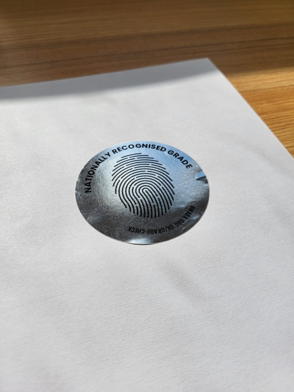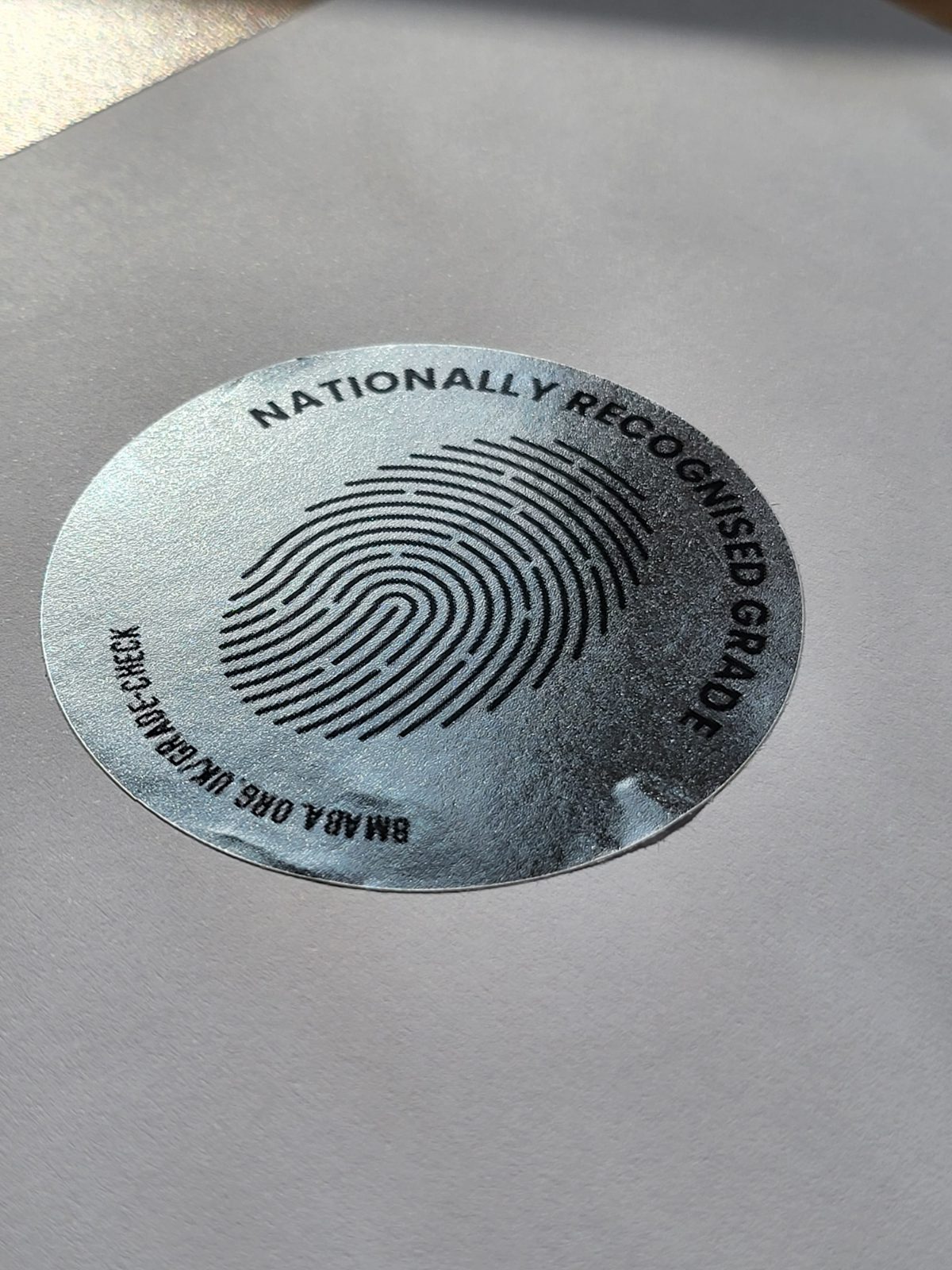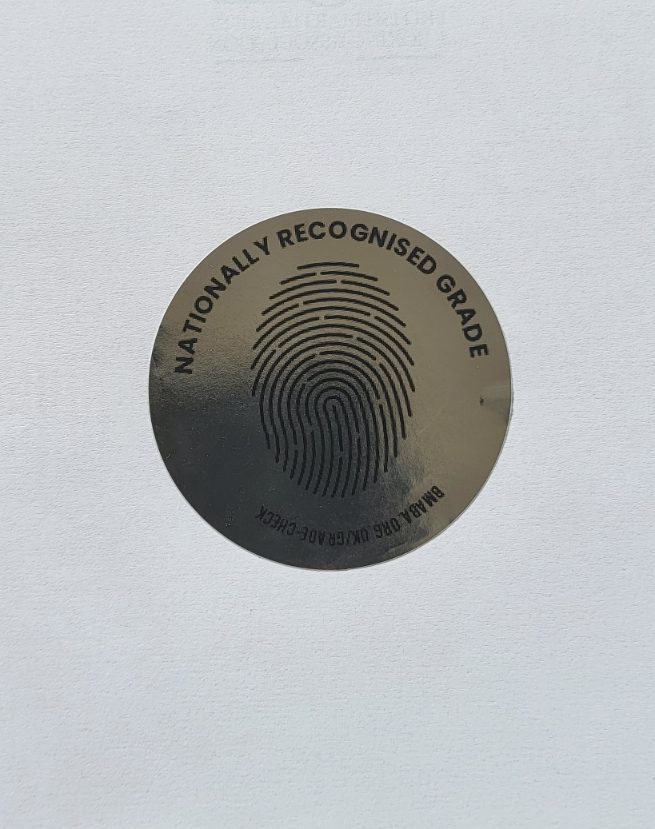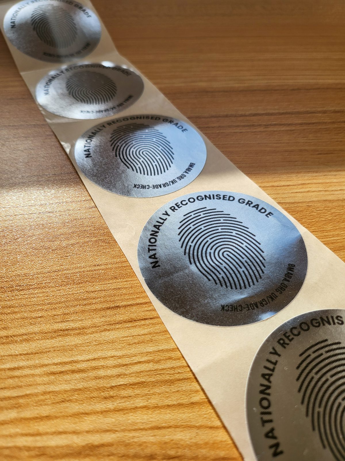 Exclusively for those using our LSGR (Lifetime Student Grade Register), these special edition official grade stickers measure around 64mm in diameter and feature our unique fingerprint icon with the official grade-check URL and confirmation of the official grade status. Make sure you register the grade on our national register to ensure the student can confirm their grade if they scan or follow up on the foil! A must-have for clubs looking to assure parents and students of the nationally recognised status of their certificates.