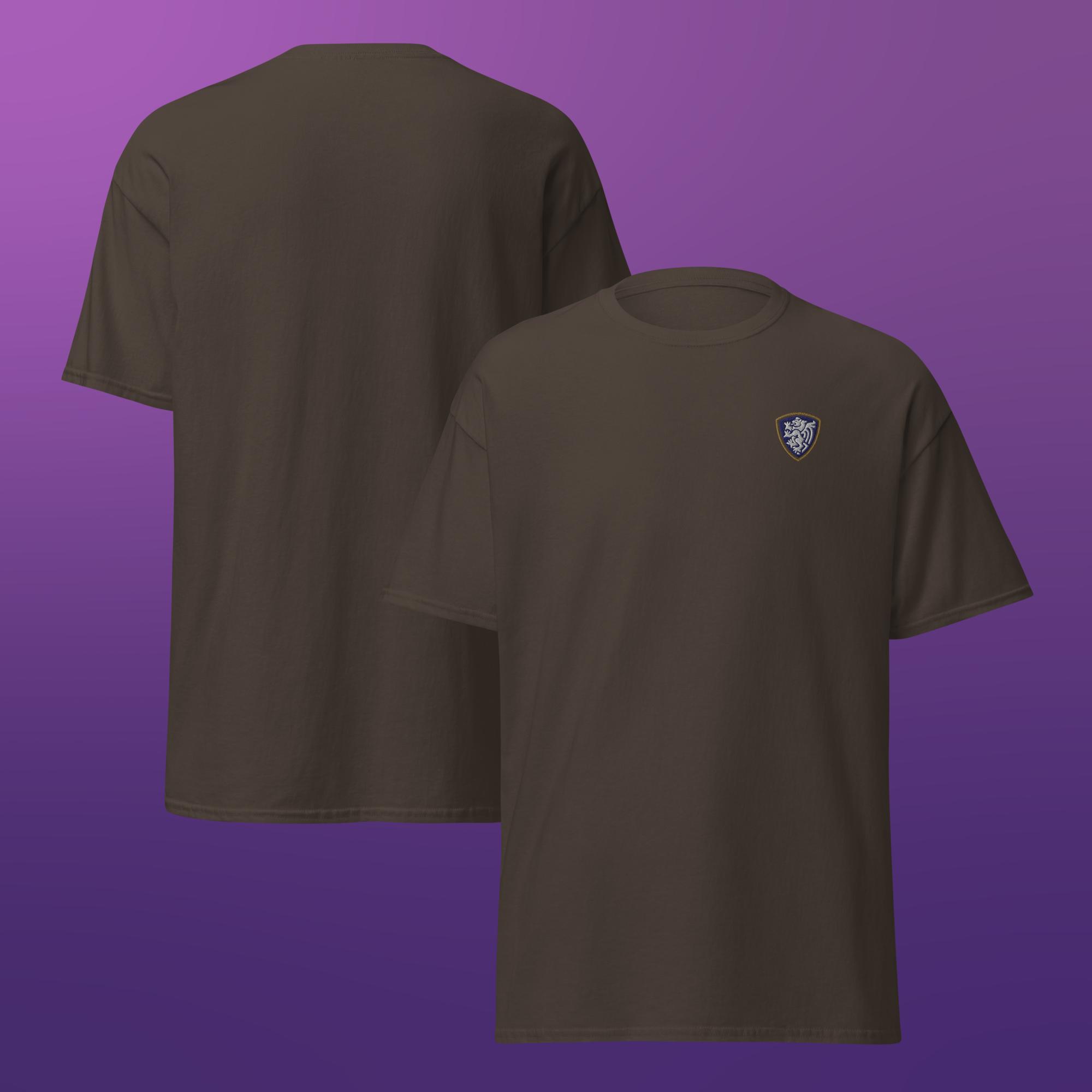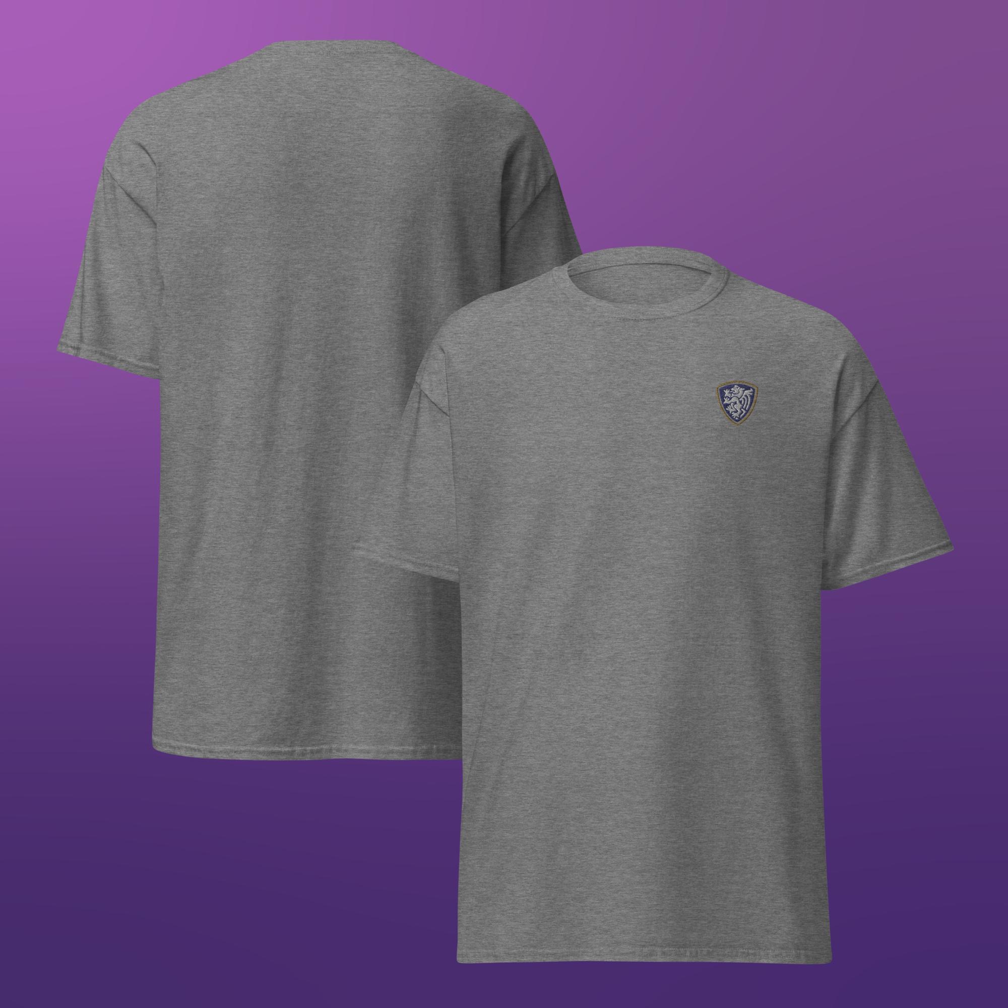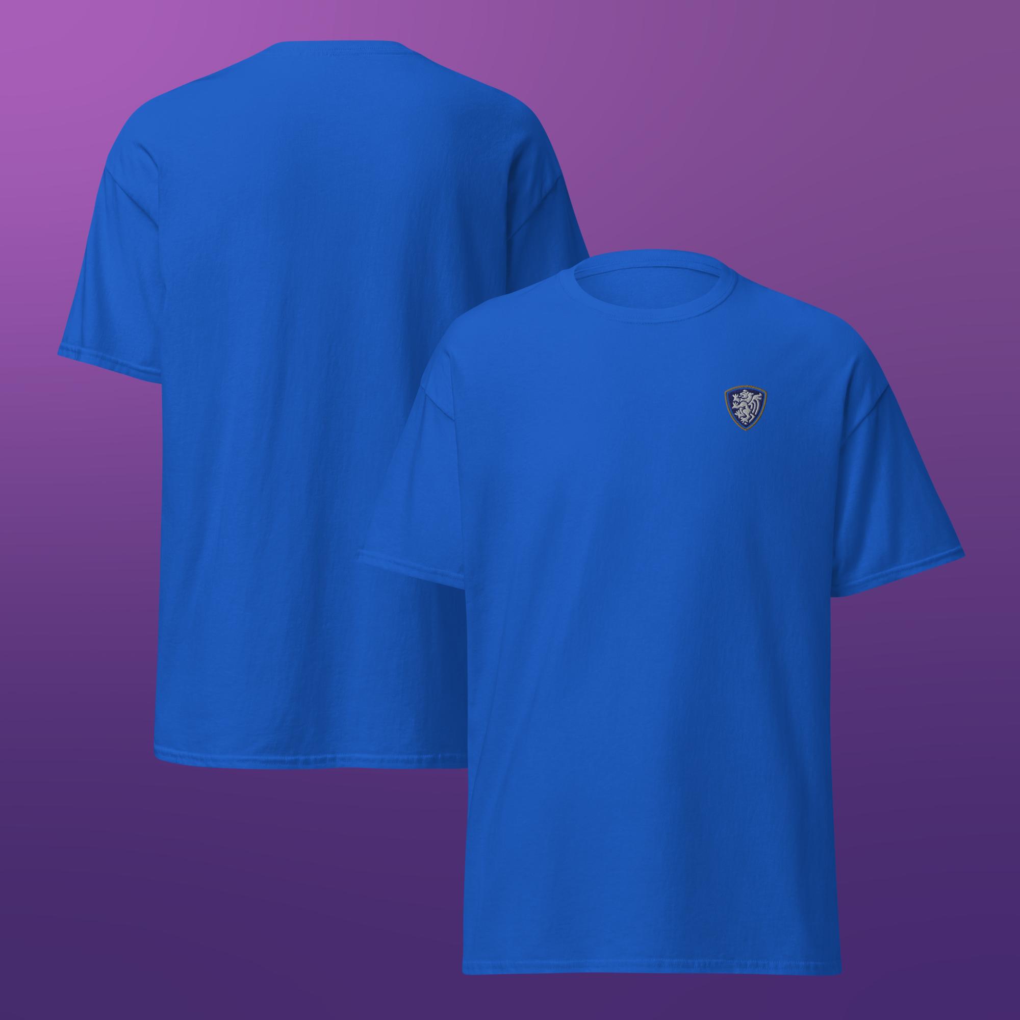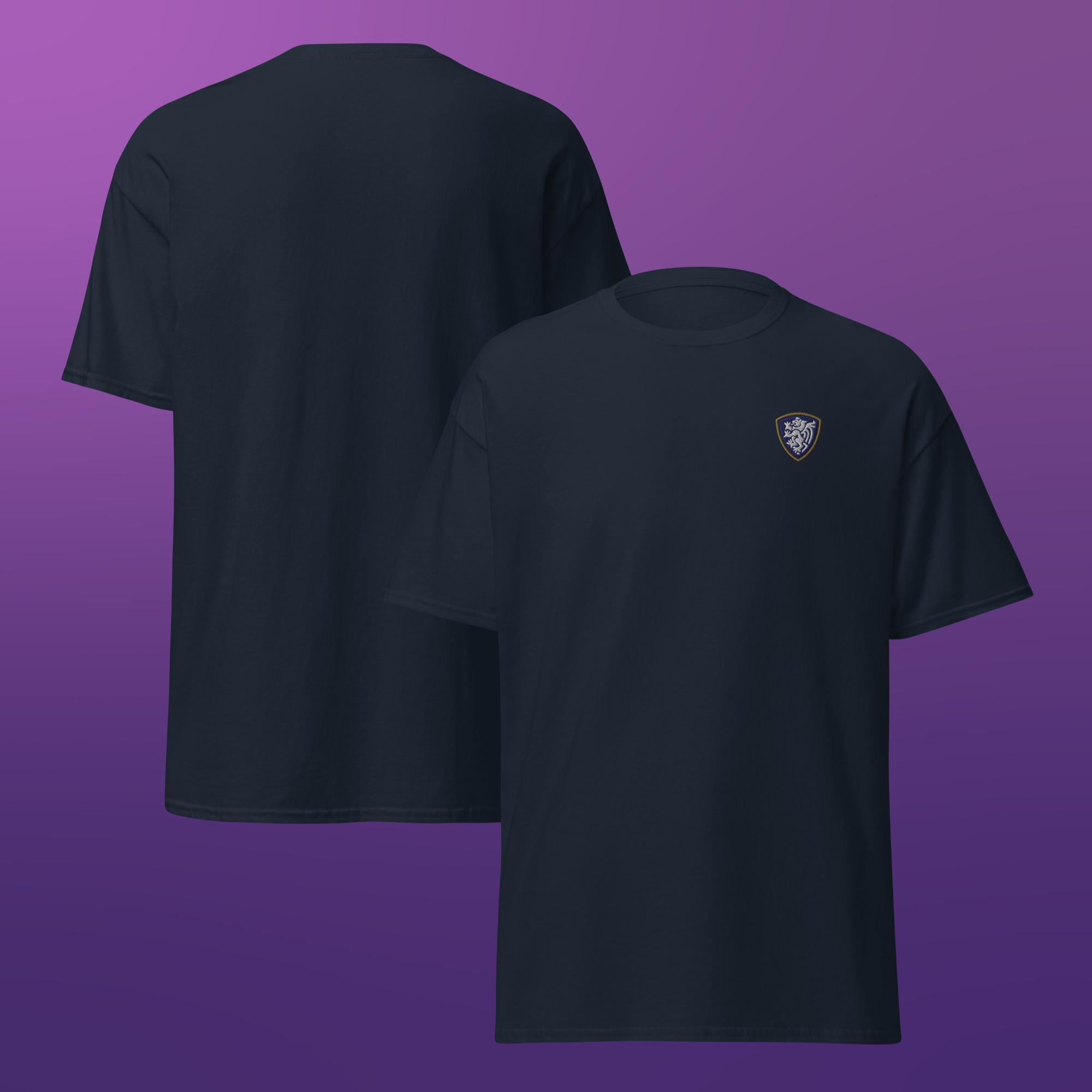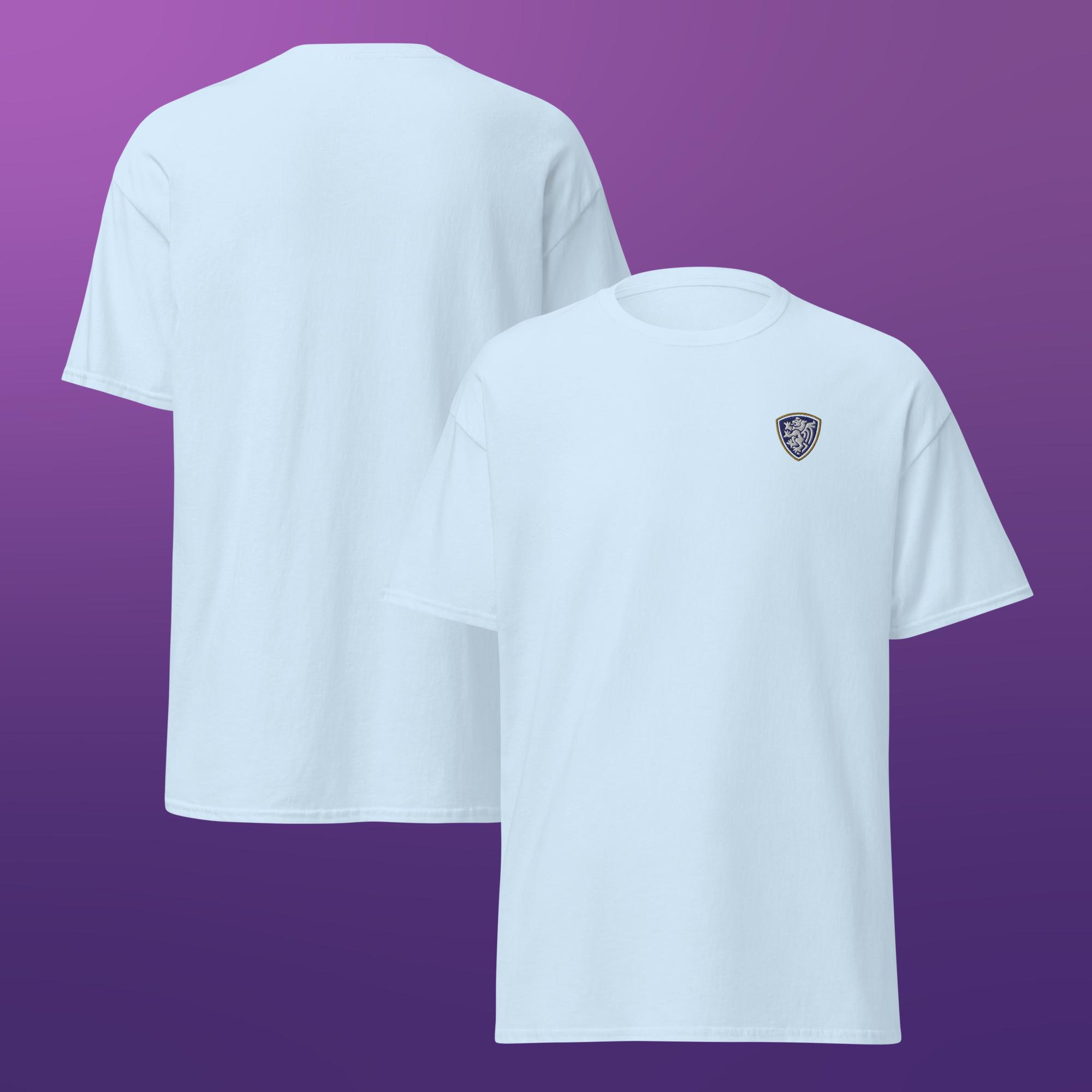 A clean, classic unisex t-shirt finished with a single embroidered crest for a simple, understated look.