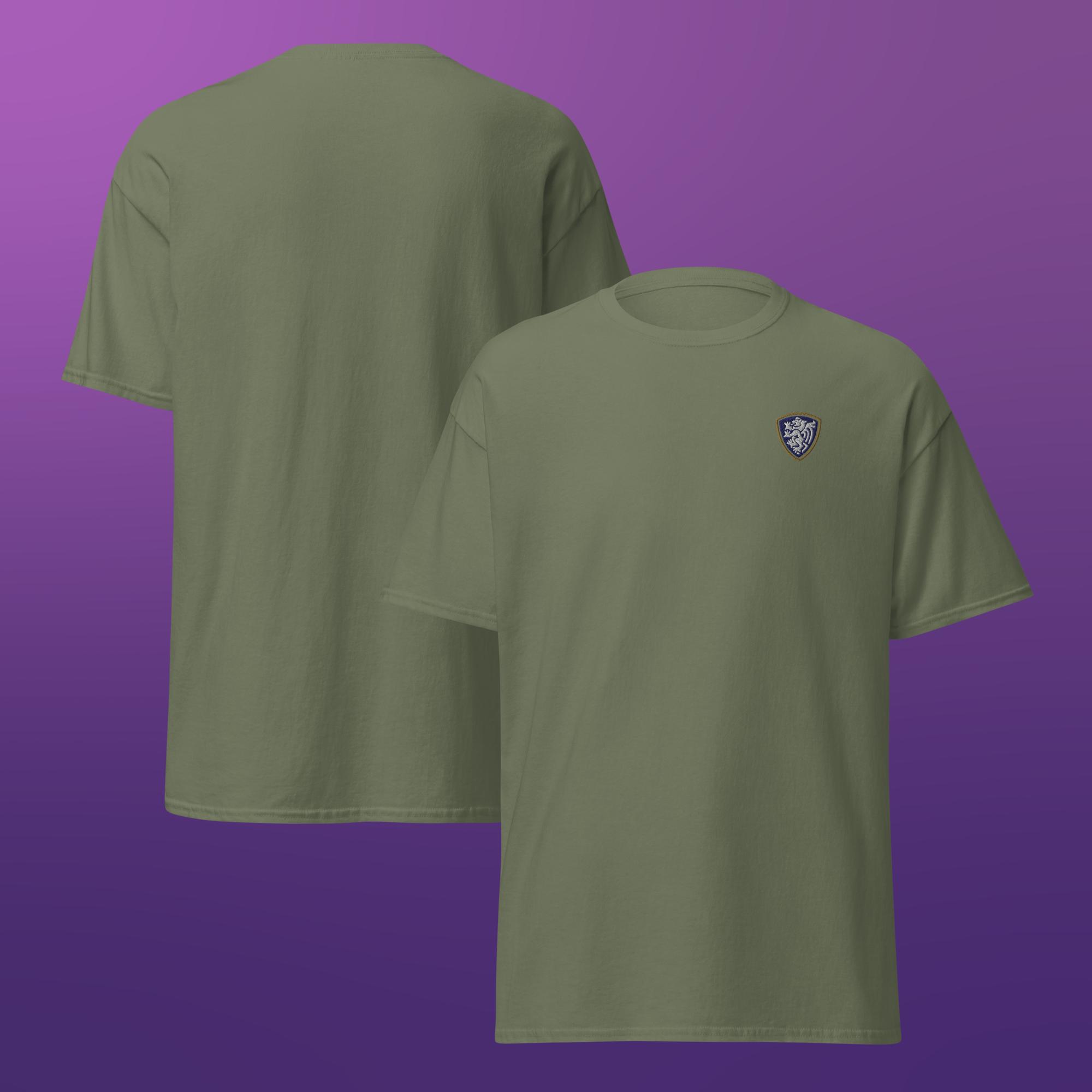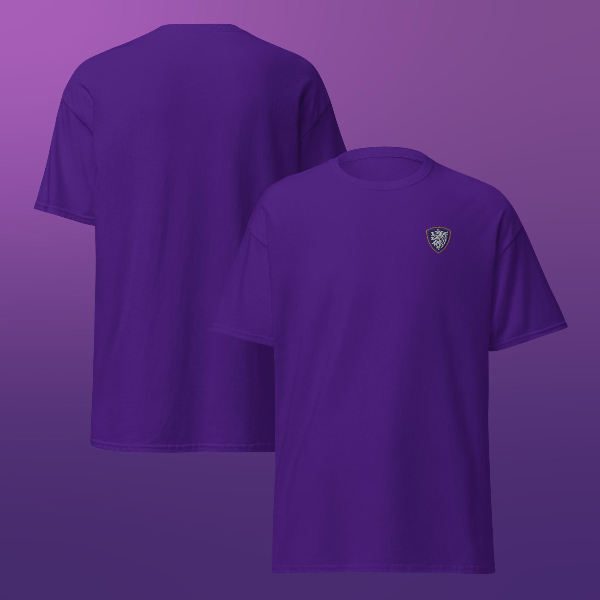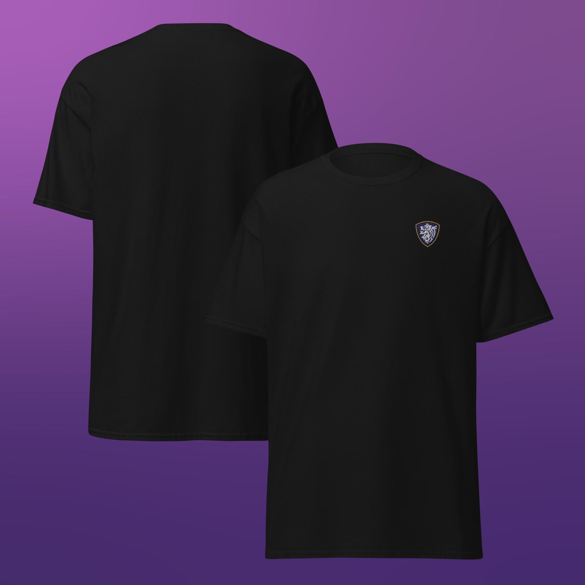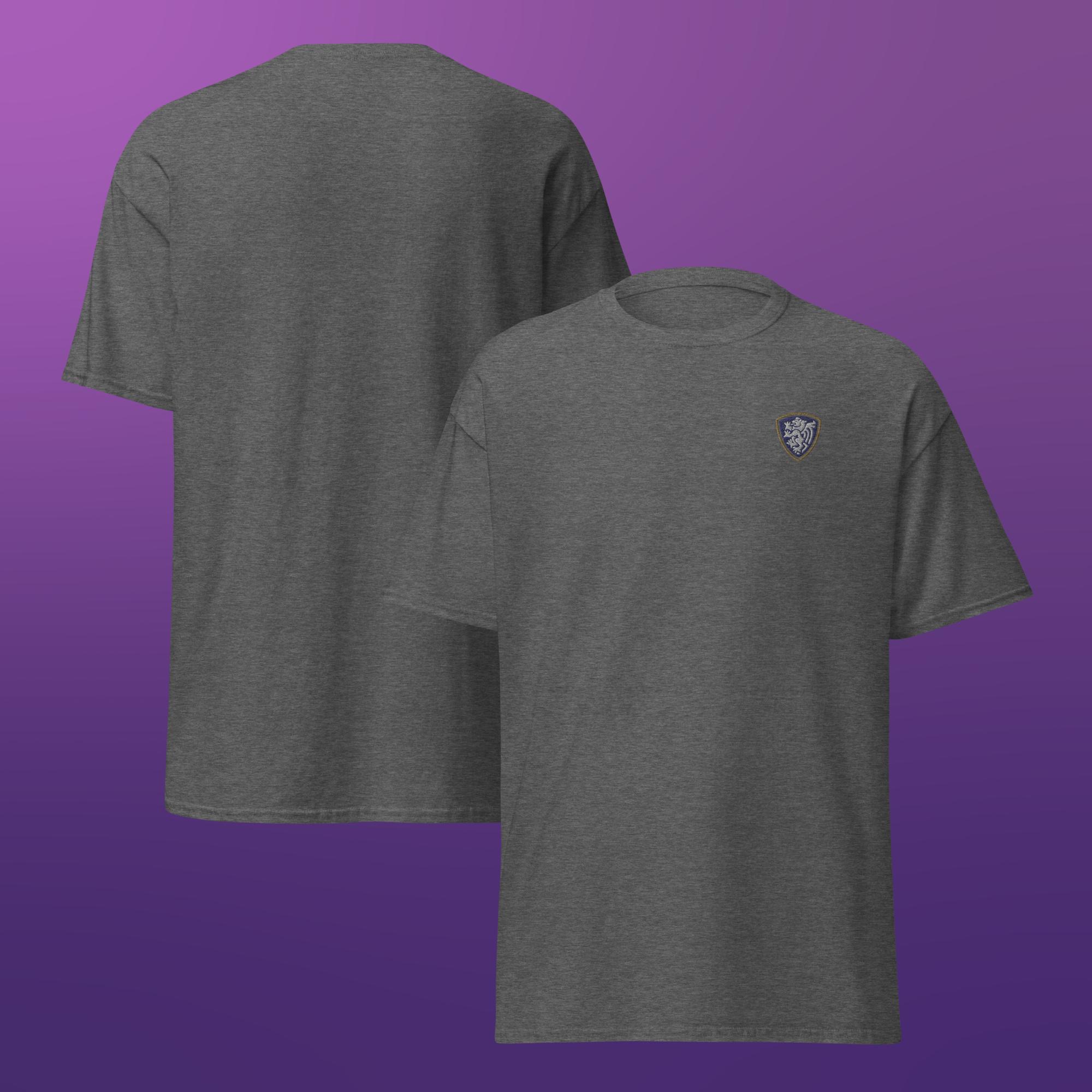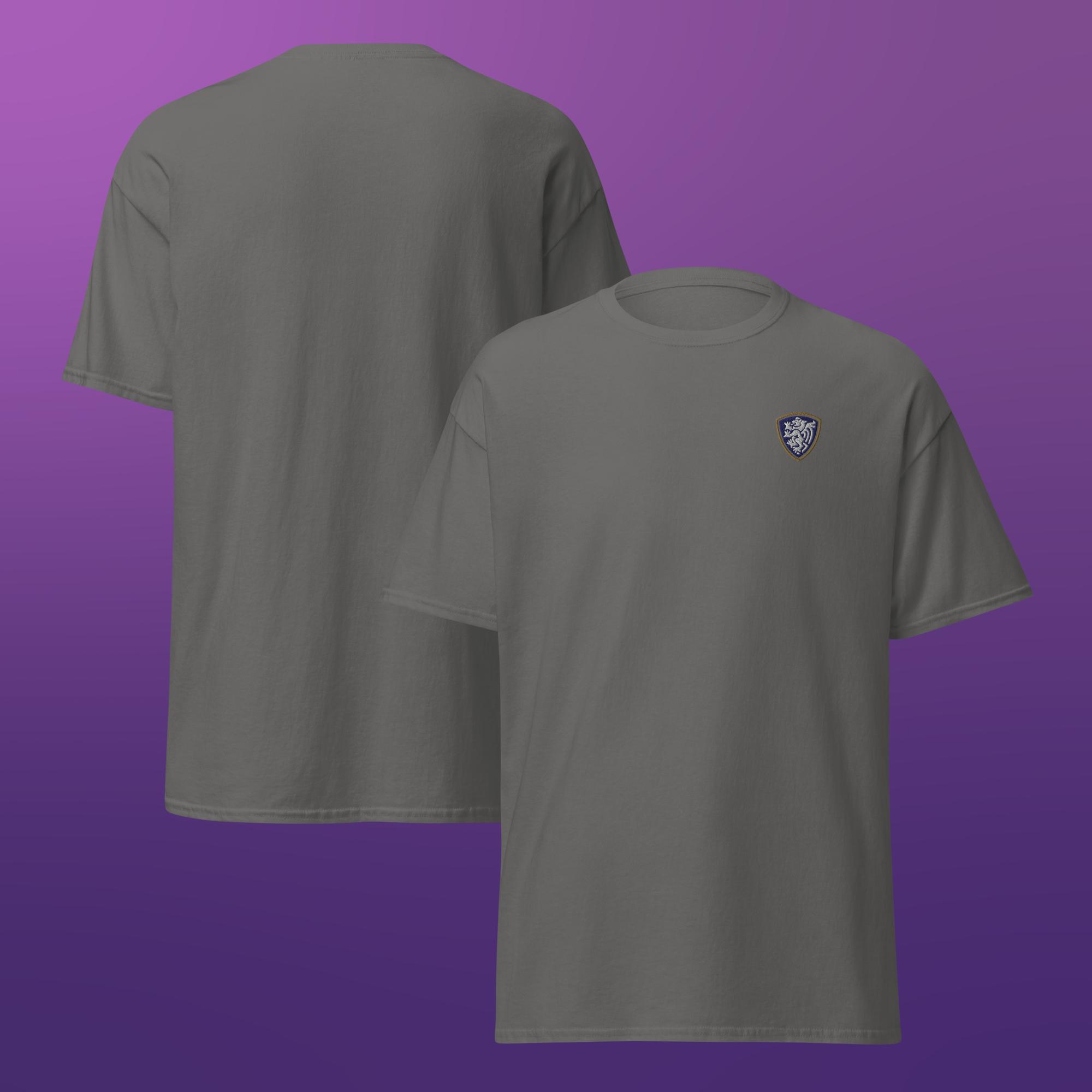 A clean, classic unisex t-shirt finished with a single embroidered crest for a simple, understated look.