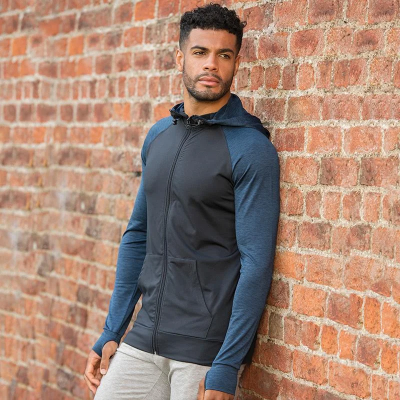Stay warm, comfortable, and ready to perform with this high-performance sports zoodie. Designed for versatility, it features moisture-wicking fabric to keep you dry, a lightly brushed interior for added warmth, and an adjustable hood for protection against the elements. The raglan sleeves and thumb holes ensure a full range of motion, making it ideal for training, commuting, or layering on cooler days. With a sleek contrast design and premium stretch fabric, this zoodie is both stylish and functional, offering the perfect blend of comfort and performance. Vegan certified and BSCI approved, it’s built for athletes who demand quality without compromise.